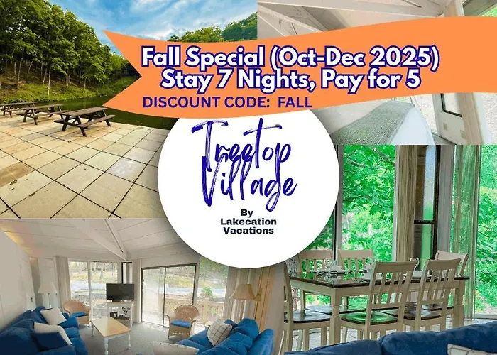Situated 4.8 km from the Jennings Branch Cove, Lakeview Treetop Village77-3Bed3Bapools-8Pp Village of Four Seasons villa invites guests to relax at a terrace.